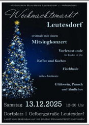 Der Weihnachtsmarkt Leutesdorf mit seiner urig-rustikalen Ausstrahlung, seiner besonderen Atmosphäre und den zahlreichen Attraktionen für Jung und Alt findet jedes Jahr am 2. Samstag im Dezember statt. Der Markt wird vom Musikverein Blau-Weiß Leutesdorf e.V., veranstaltet.